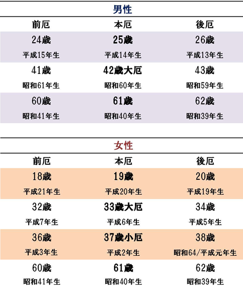 ※ 但し、男女61歳の厄年は、満年齢です